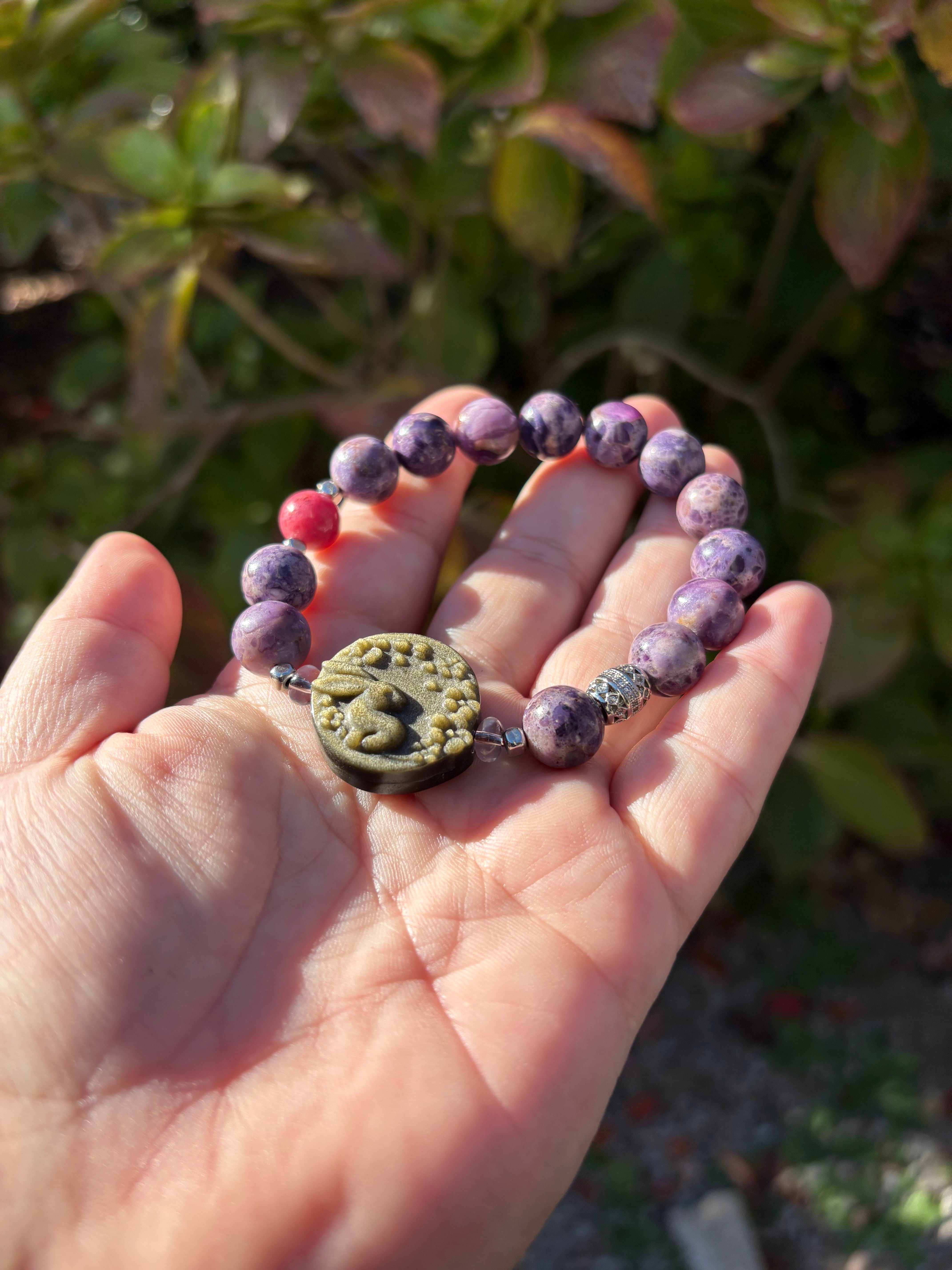 それぞれのブレスとしての役割の発揮はもちろん1粒ずつメインの天然石を交換して七福神の団結をしています。
