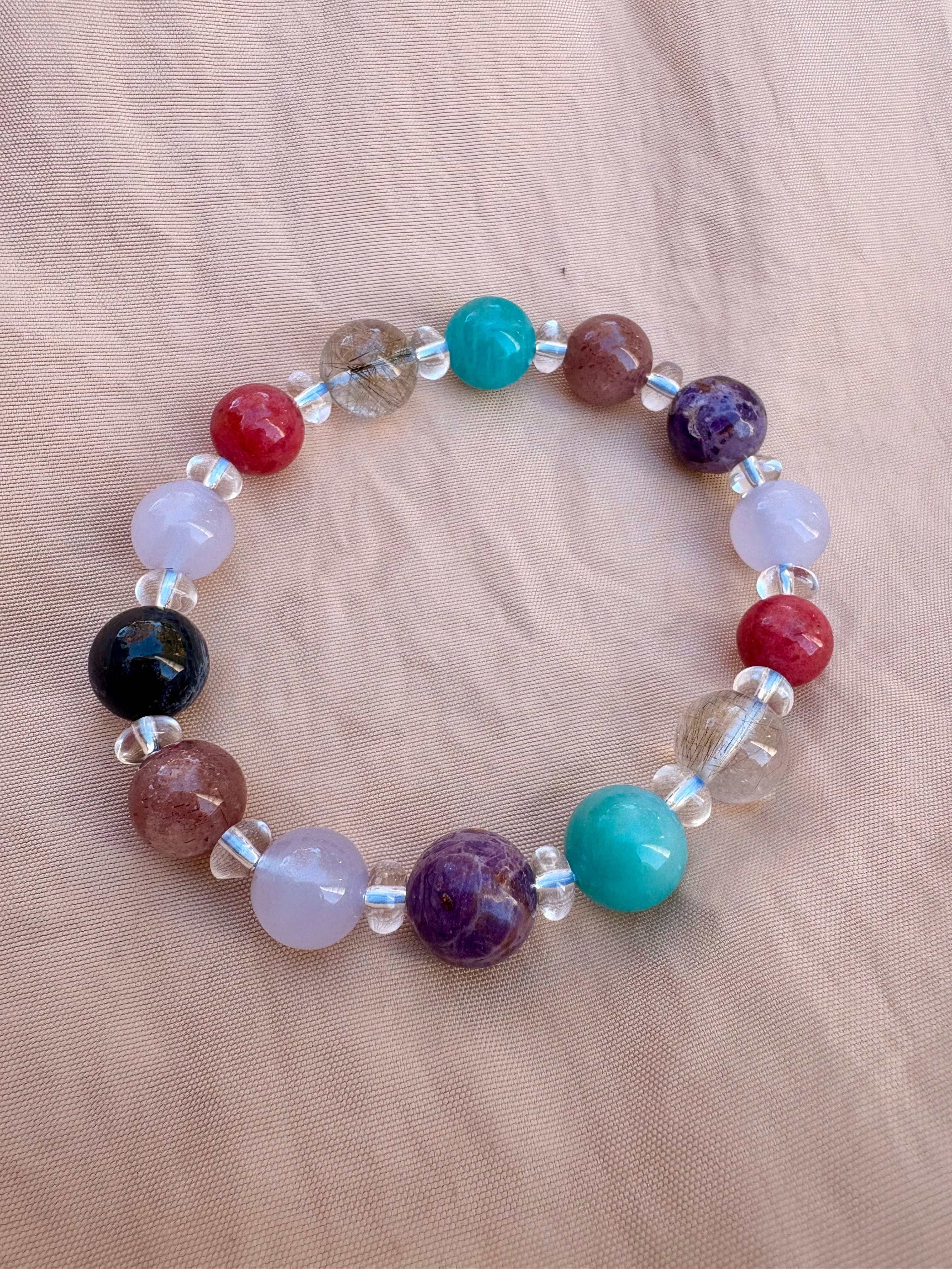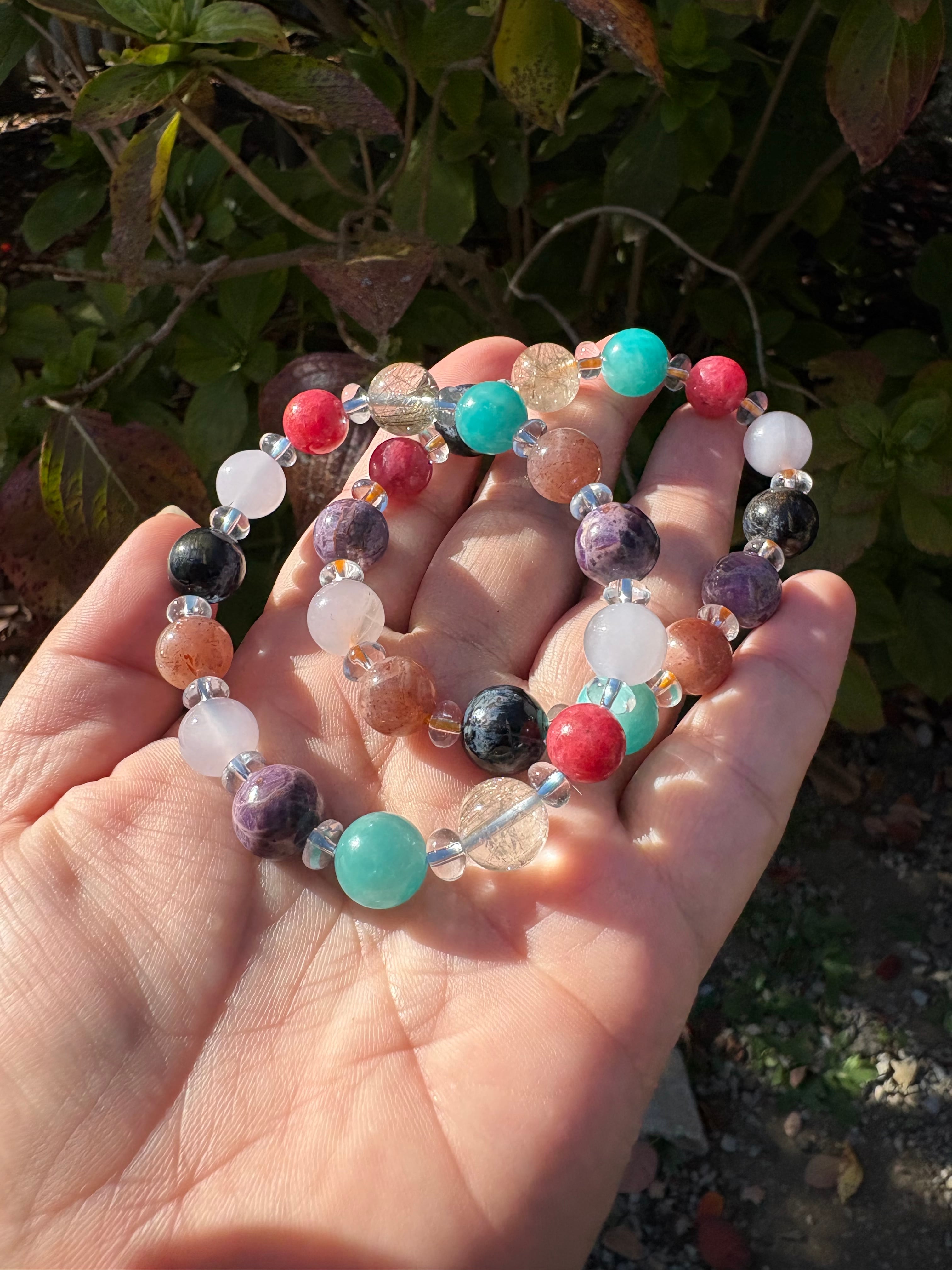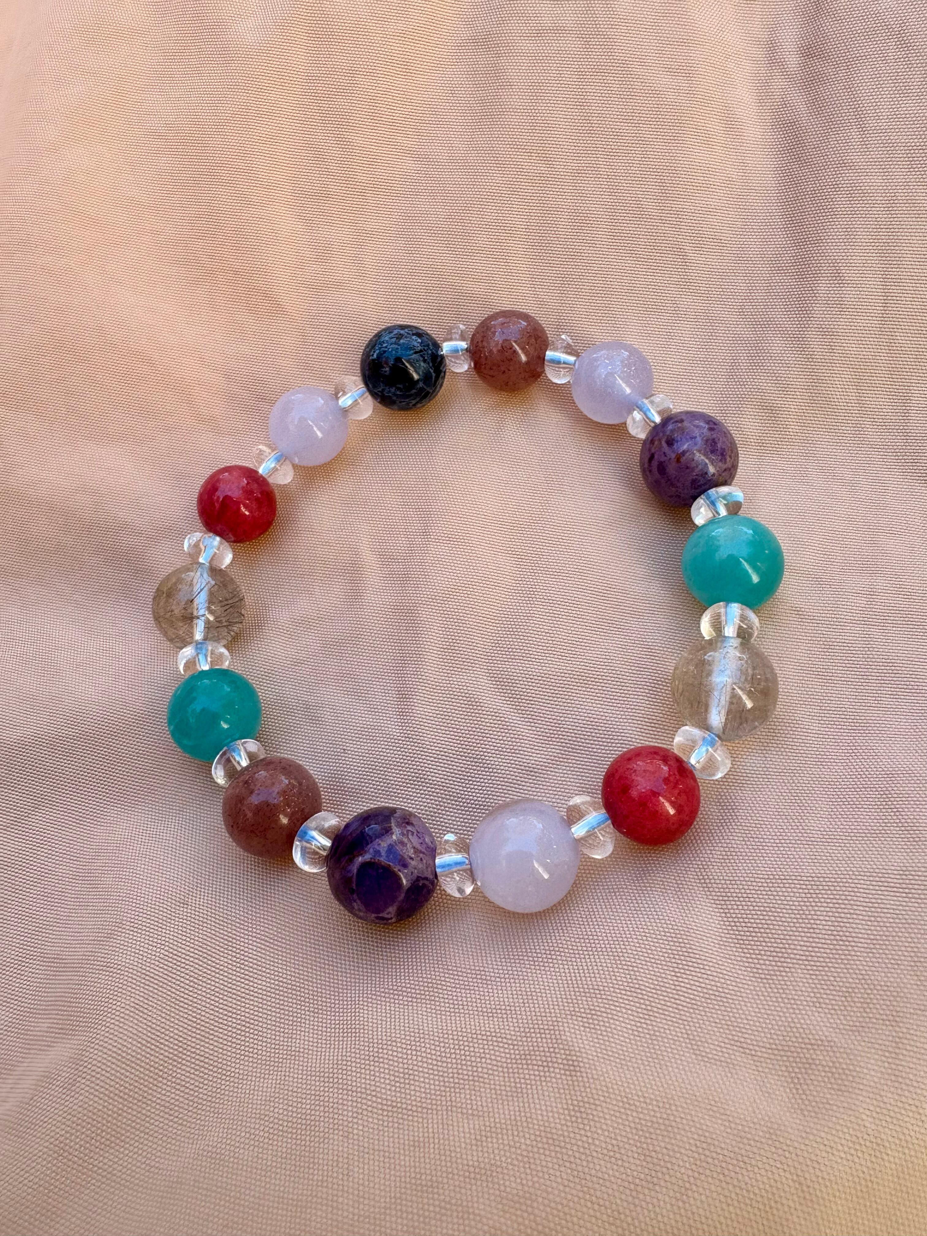 それぞれのブレスとしての役割の発揮はもちろん1粒ずつメインの天然石を交換して七福神の団結をしています。