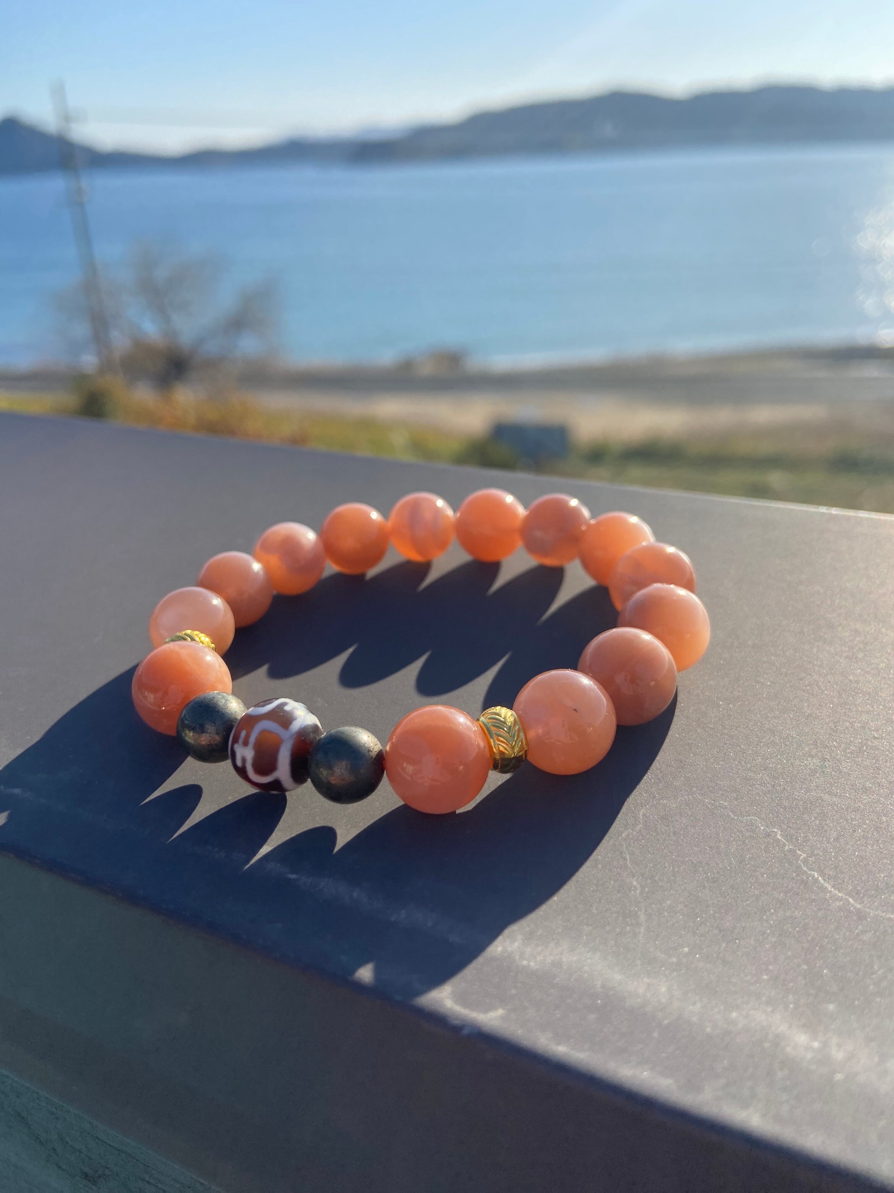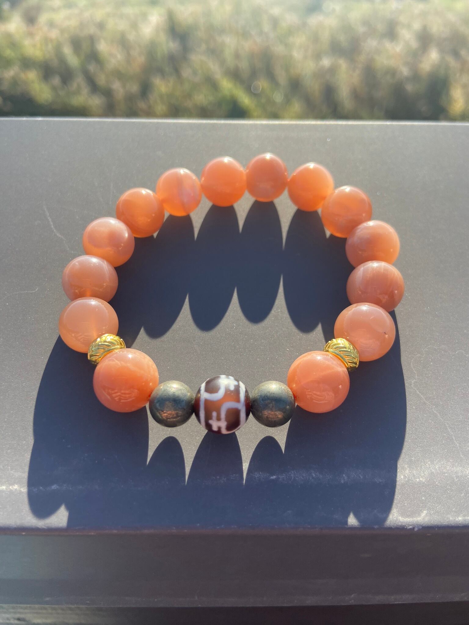 オレンジムーンストーン10mm、パイライト8mm、天珠宝瓶