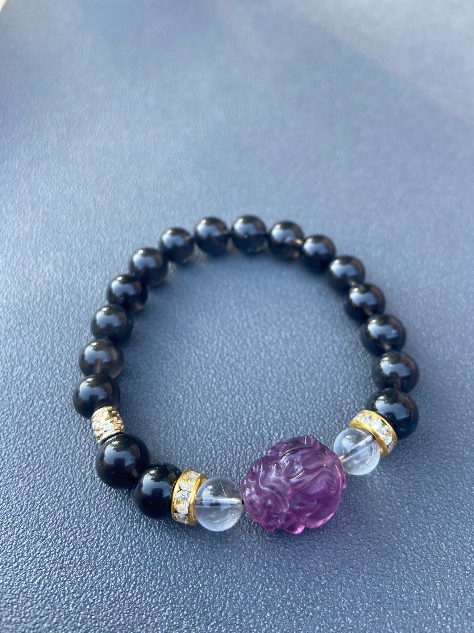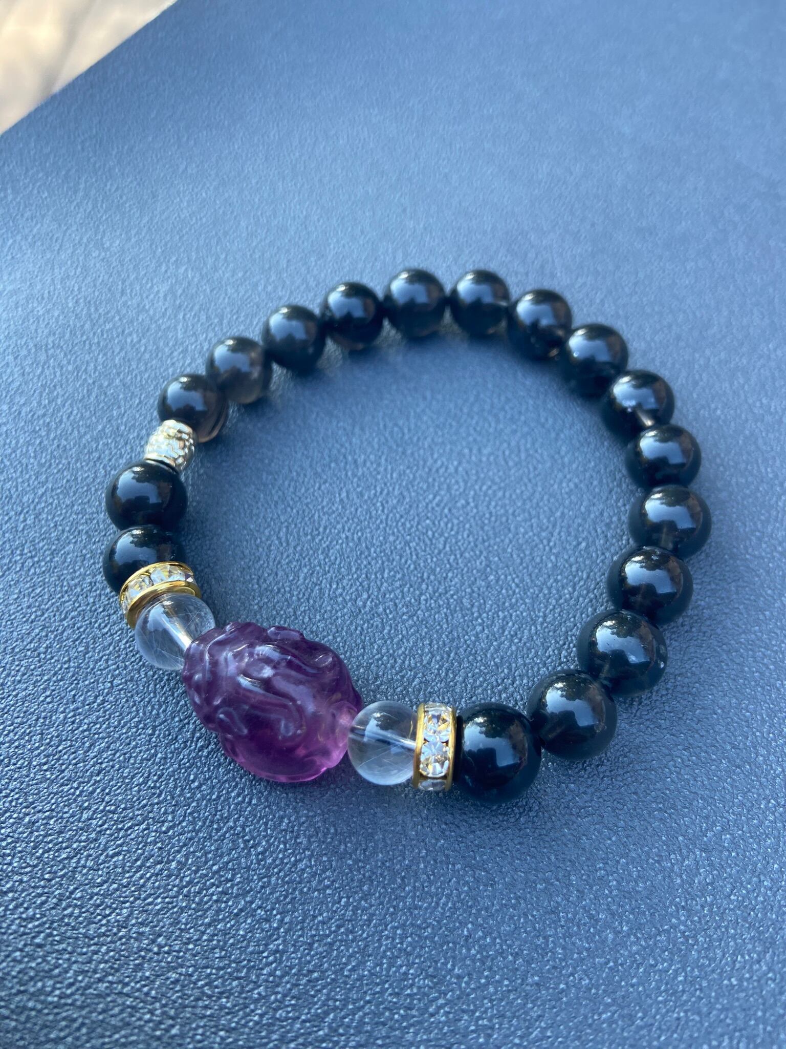 龍と蓮梨で組み合わせたパワーストーンブレスレット