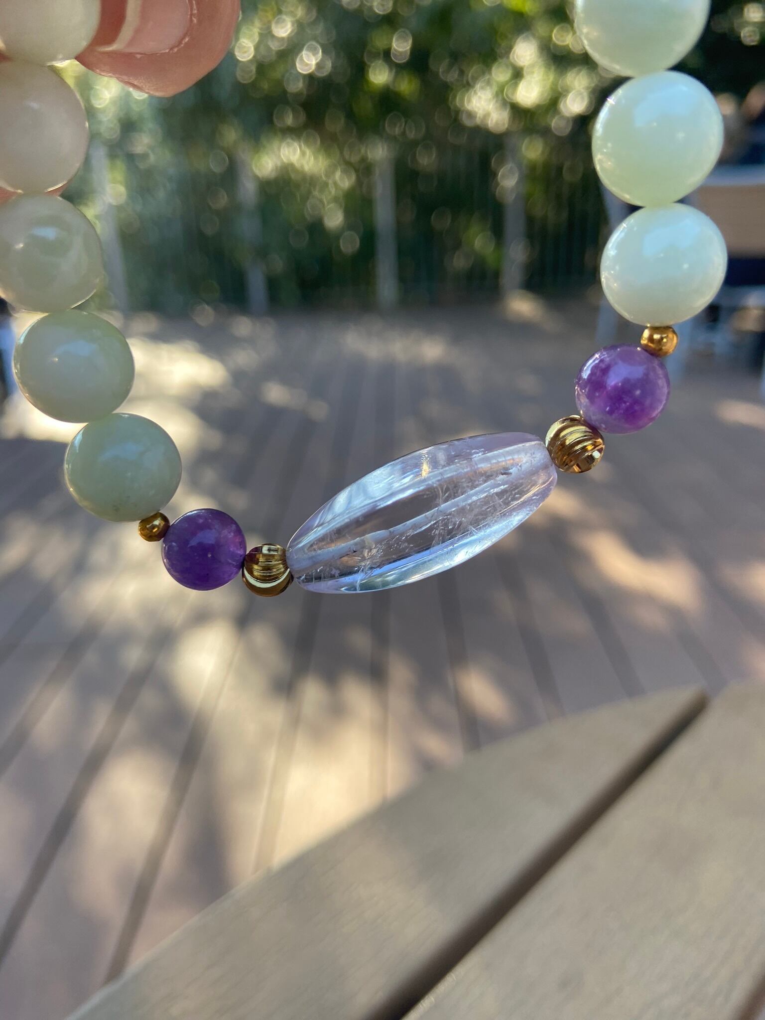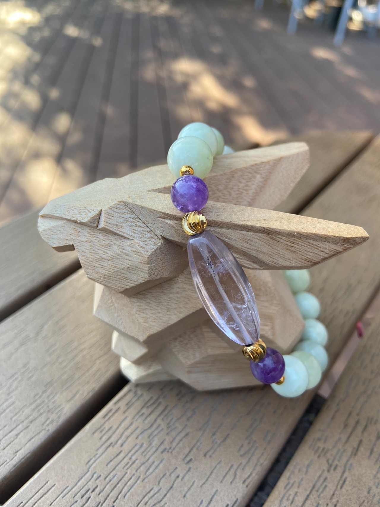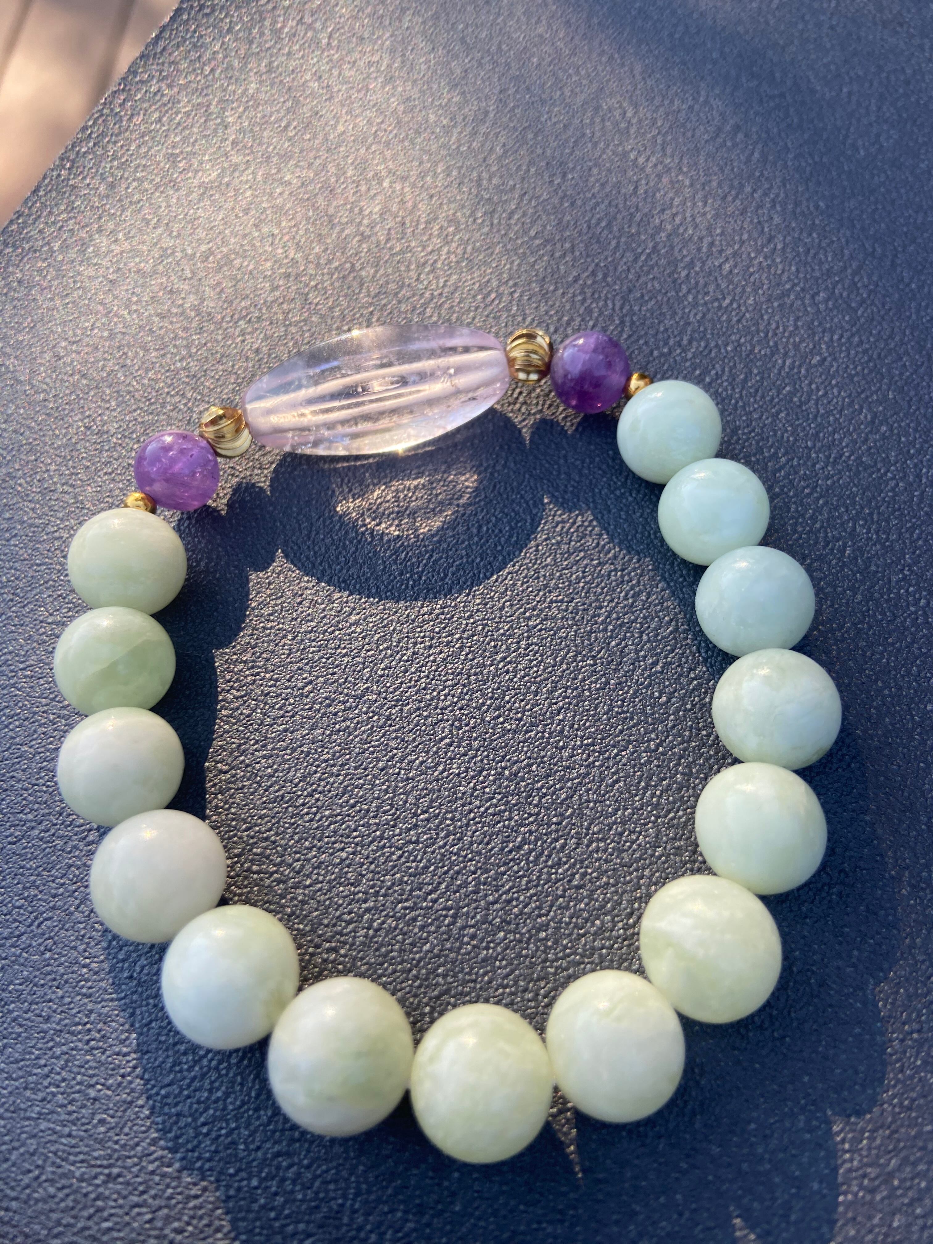 翡翠10mm、アメジスト6mm、ピンクアメジストスクエア
