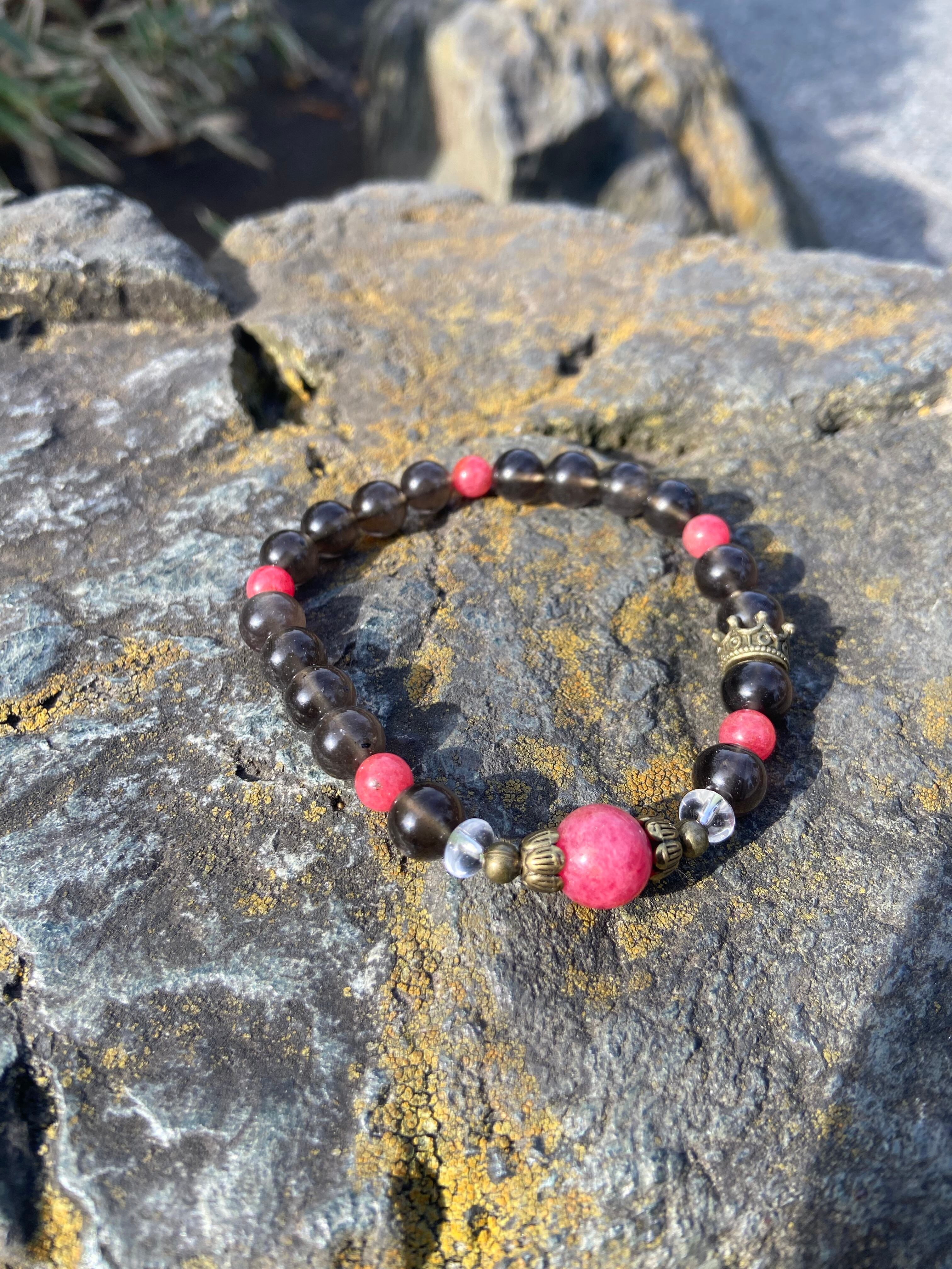 チンタマーニストーン8mm、ロードクロサイト10mm、5mm、アンティークゴールドチャーム(蓮、王冠)