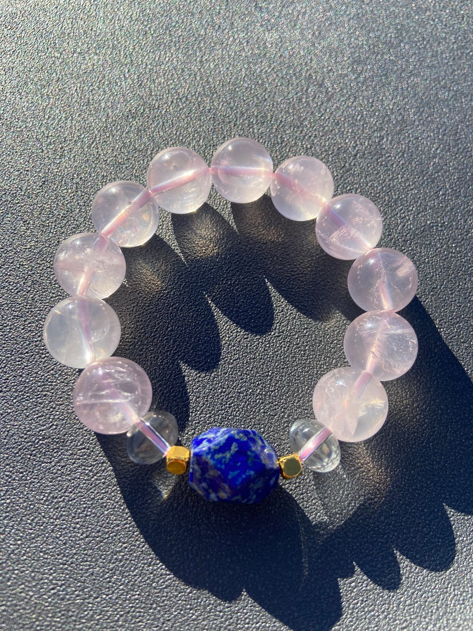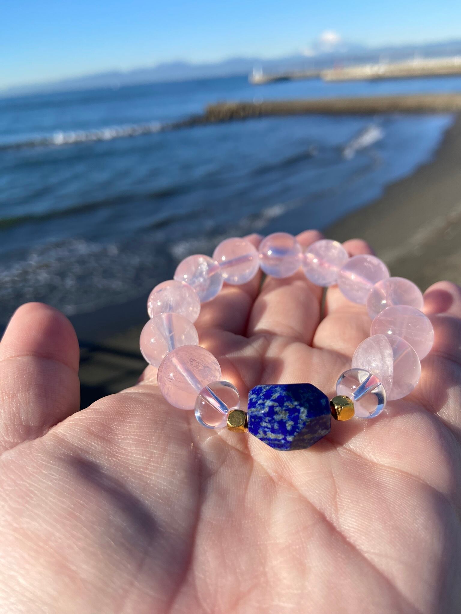 スターローズクオーツ15mm、水晶卵型10mm、ラピスラズリ15mm×10mm