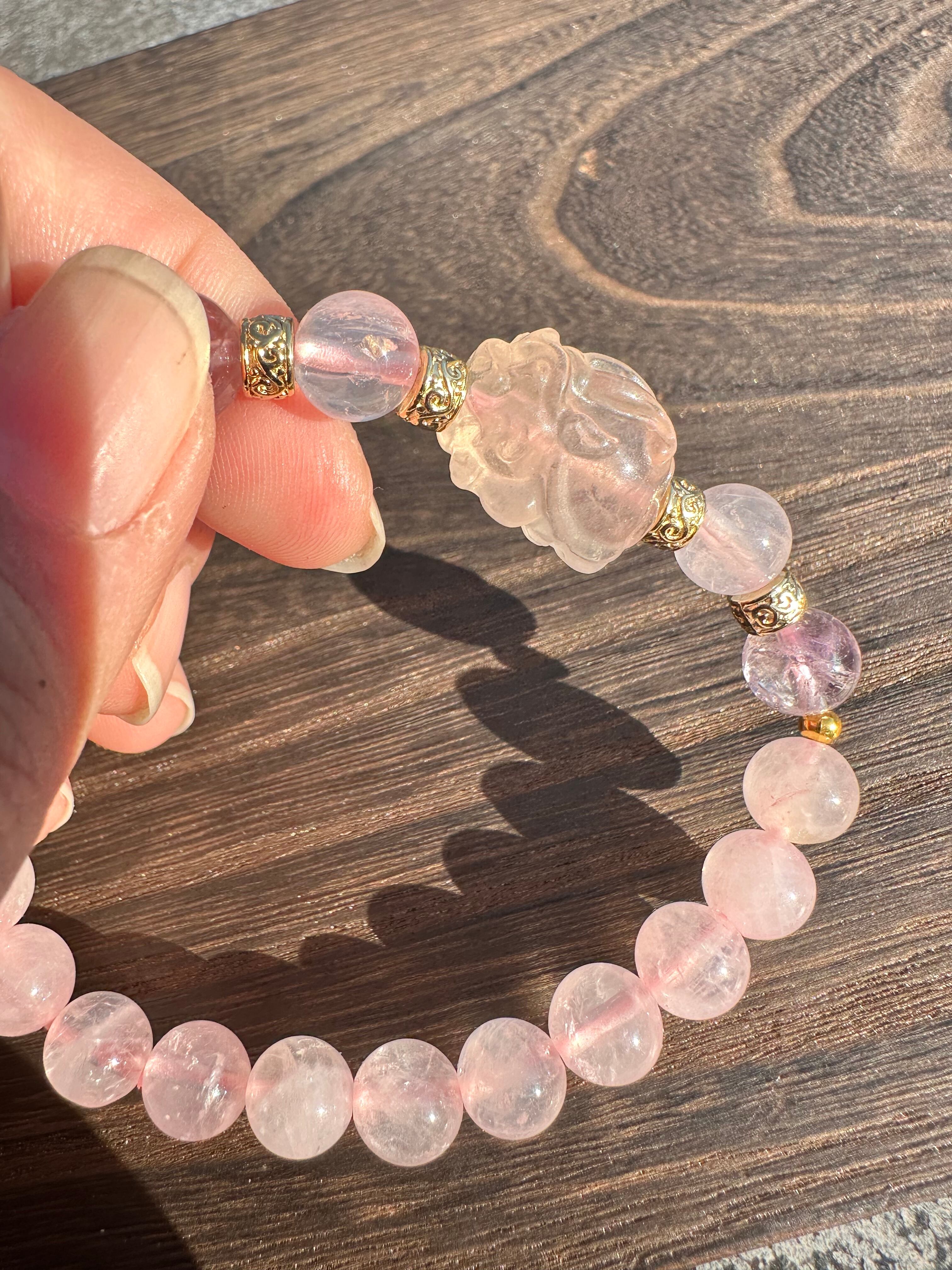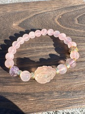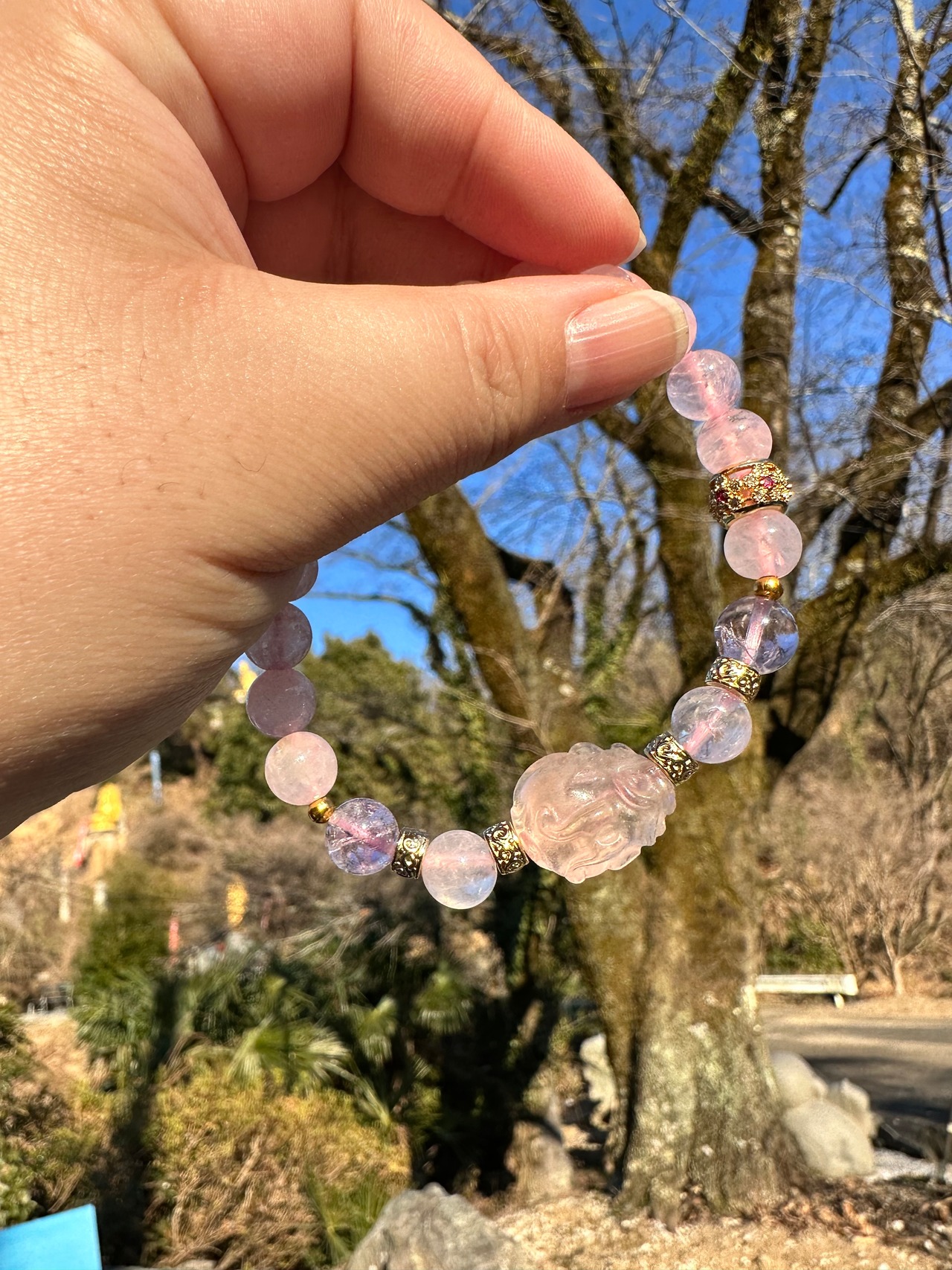ローズクォーツ6mm、アイリスアメジスト6mm、龍亀(ロングイ)、ゴールドパーツ