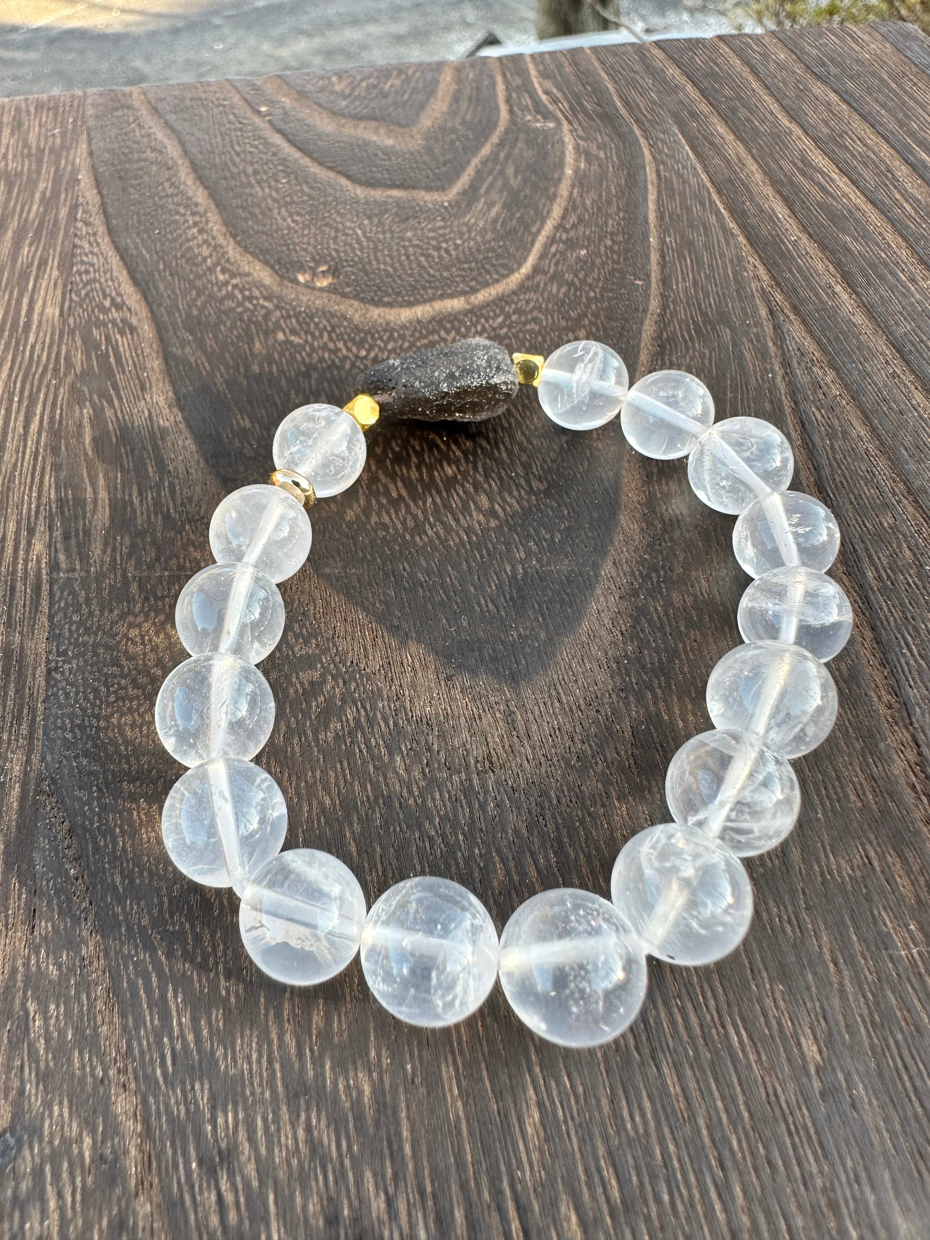 ホワイトファントムクォーツ8mm、チンターマニストーン原石、ゴールドパーツ