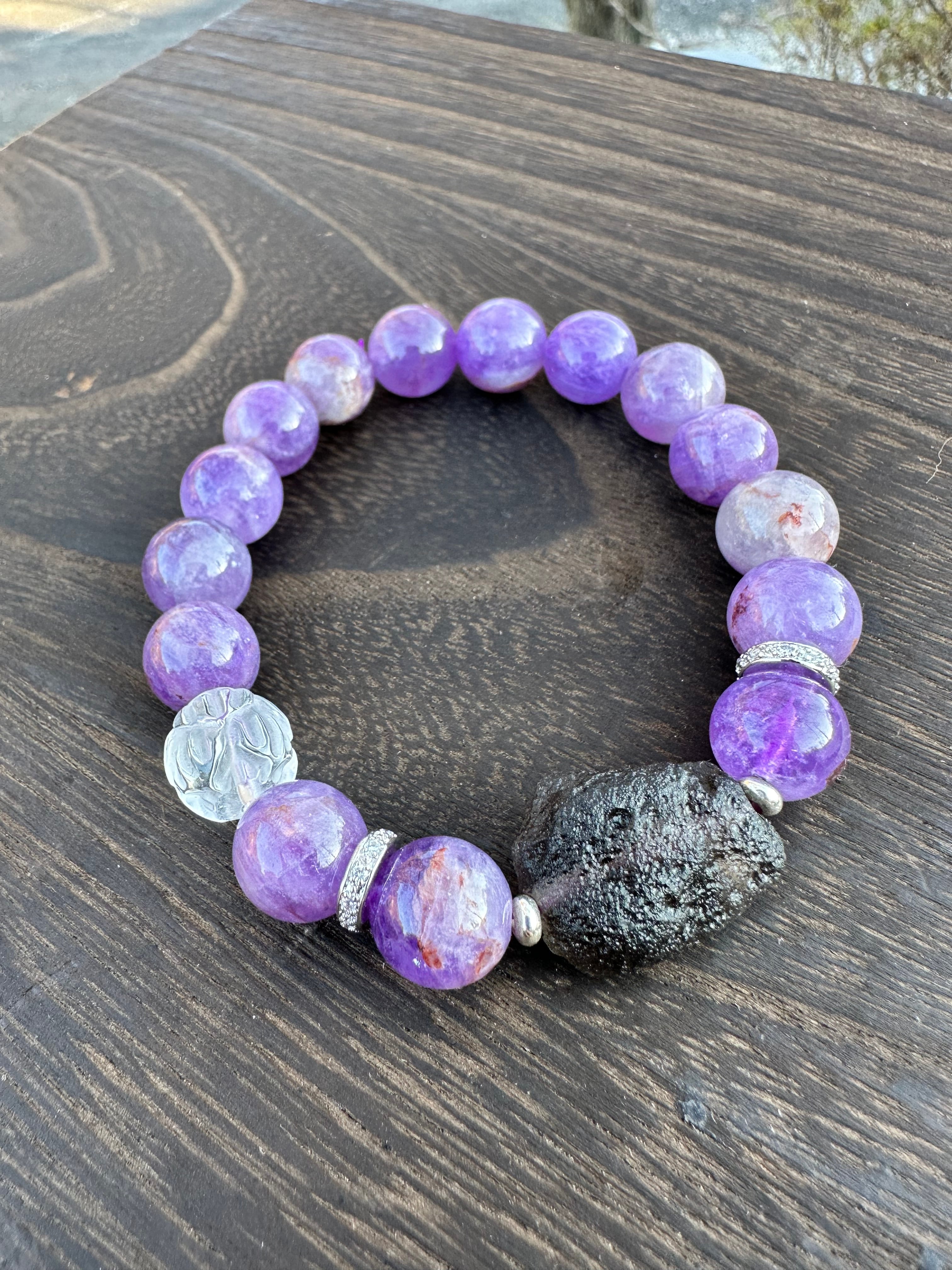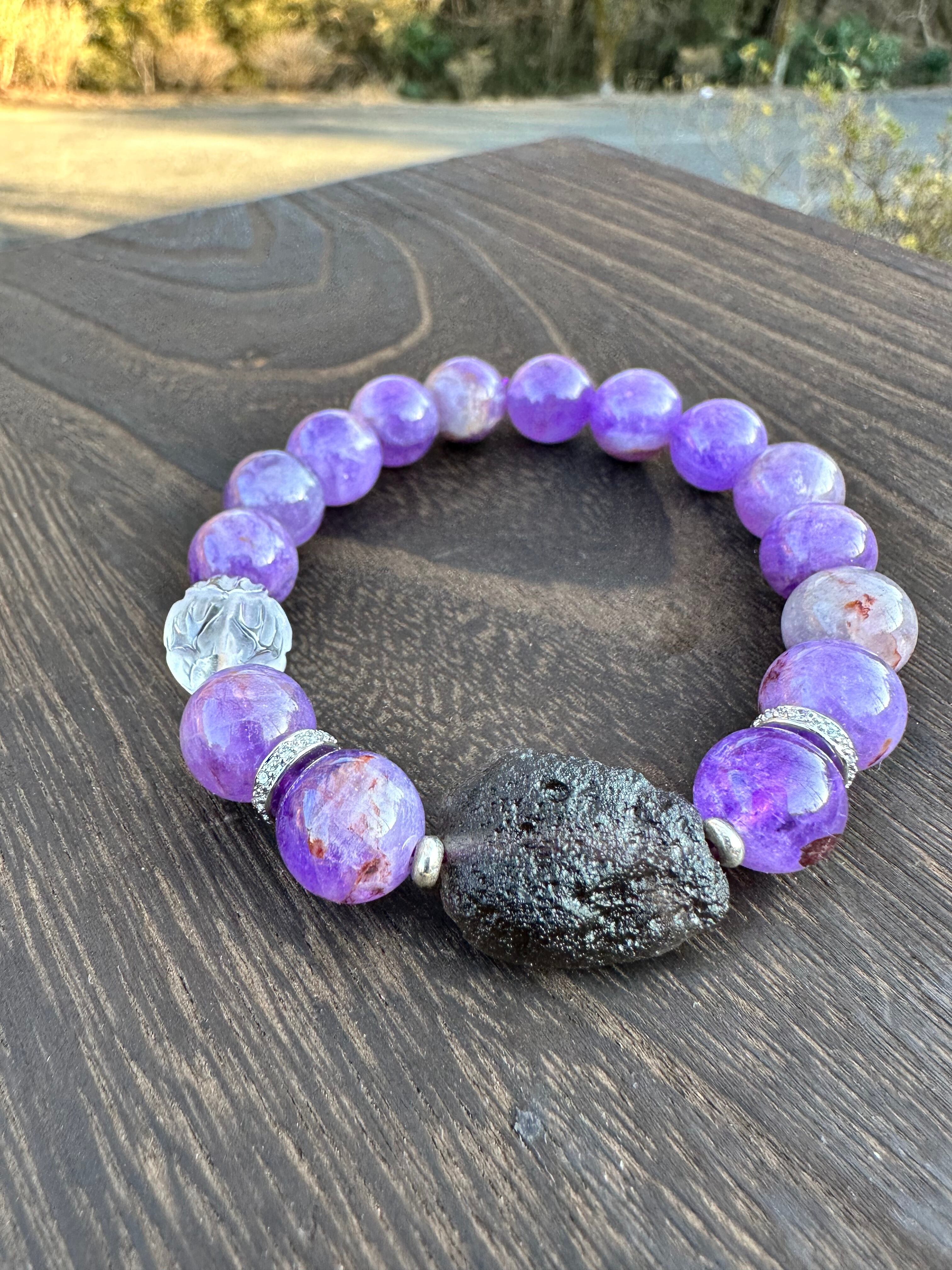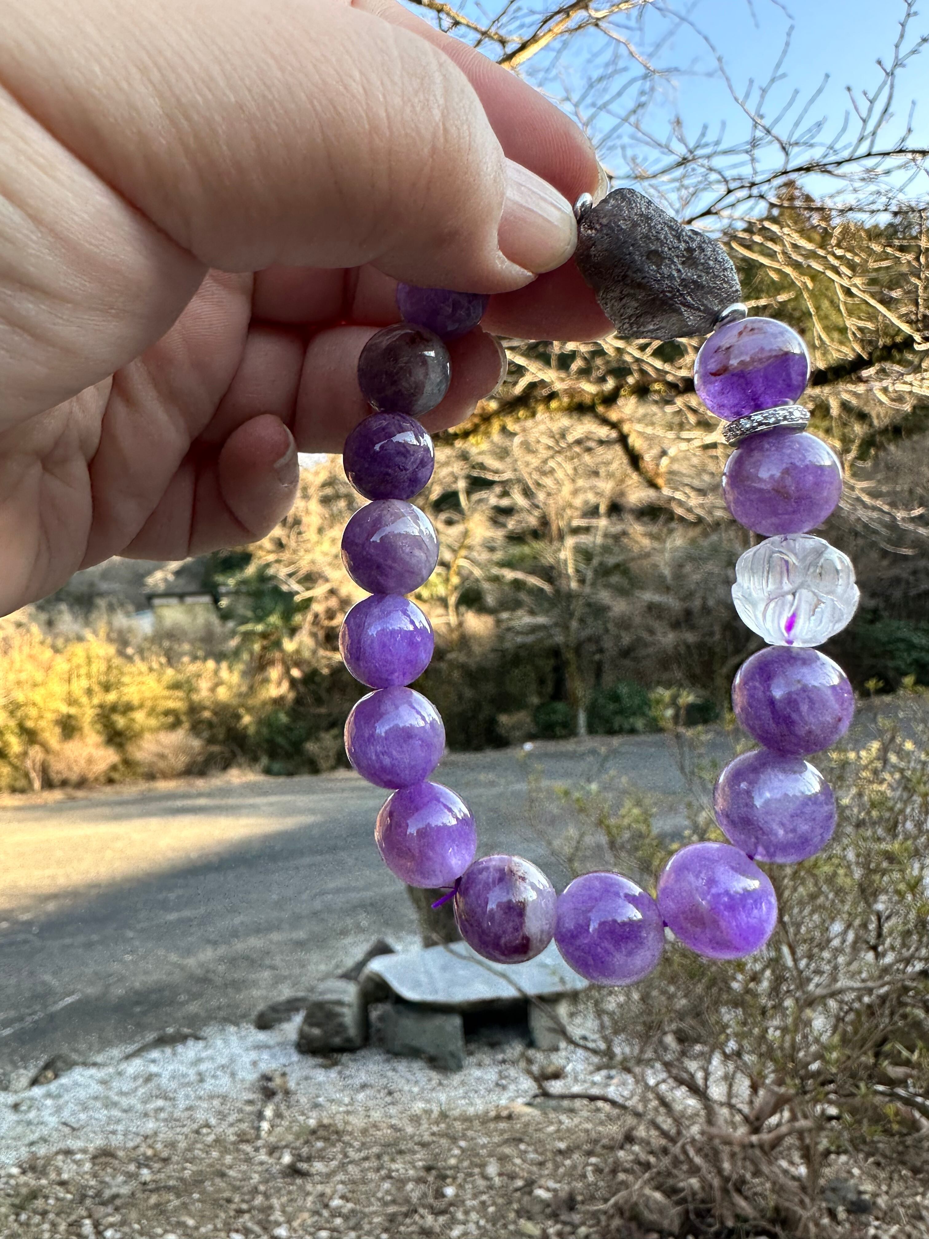 ガーデンアメジスト10mm、蓮彫水晶10mm、チンターマニストーン原石、シルバーパーツ