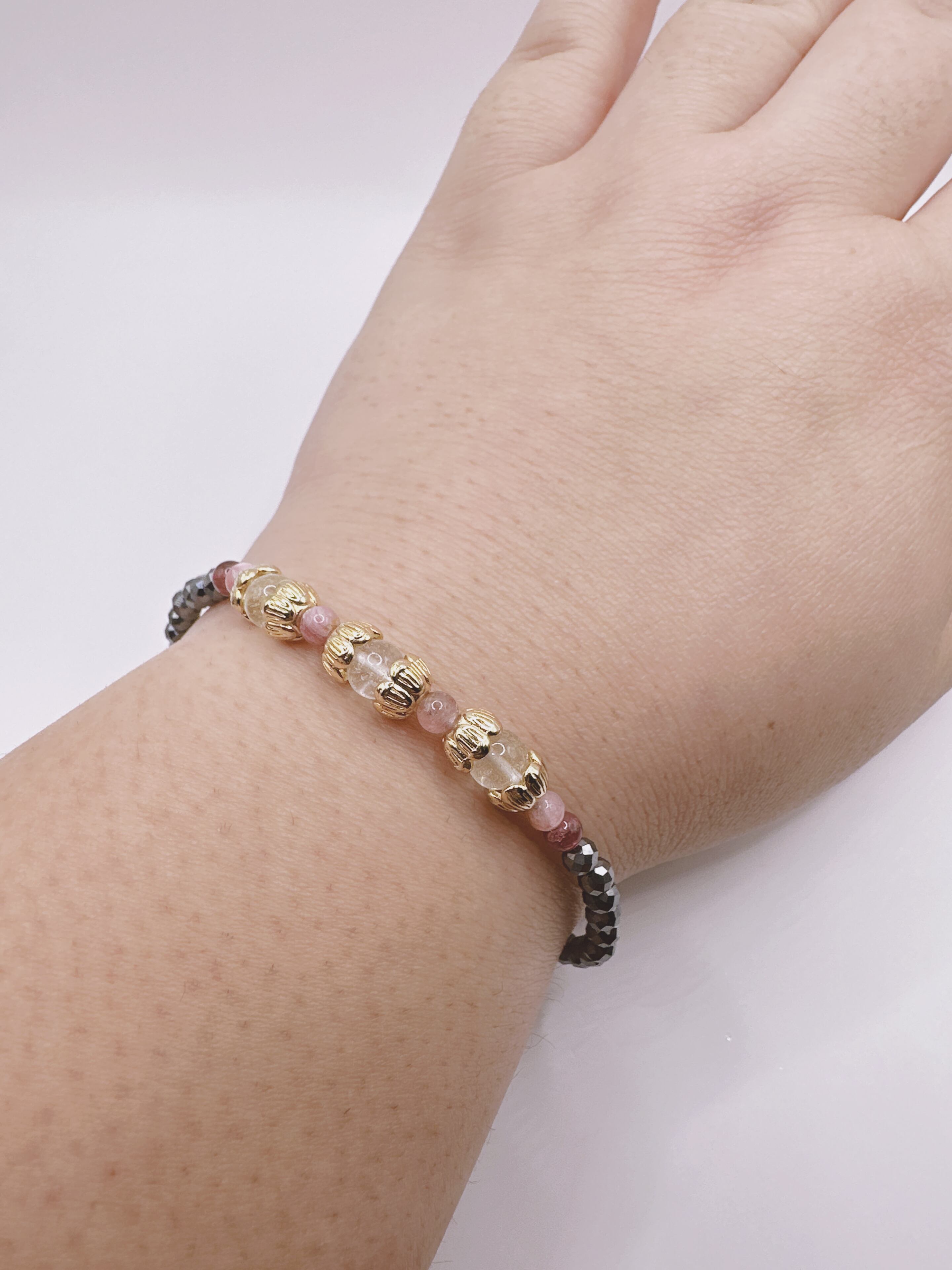 銀河をイメージしたキラキラカットのヘマタイトの細身ブレスを付けました。