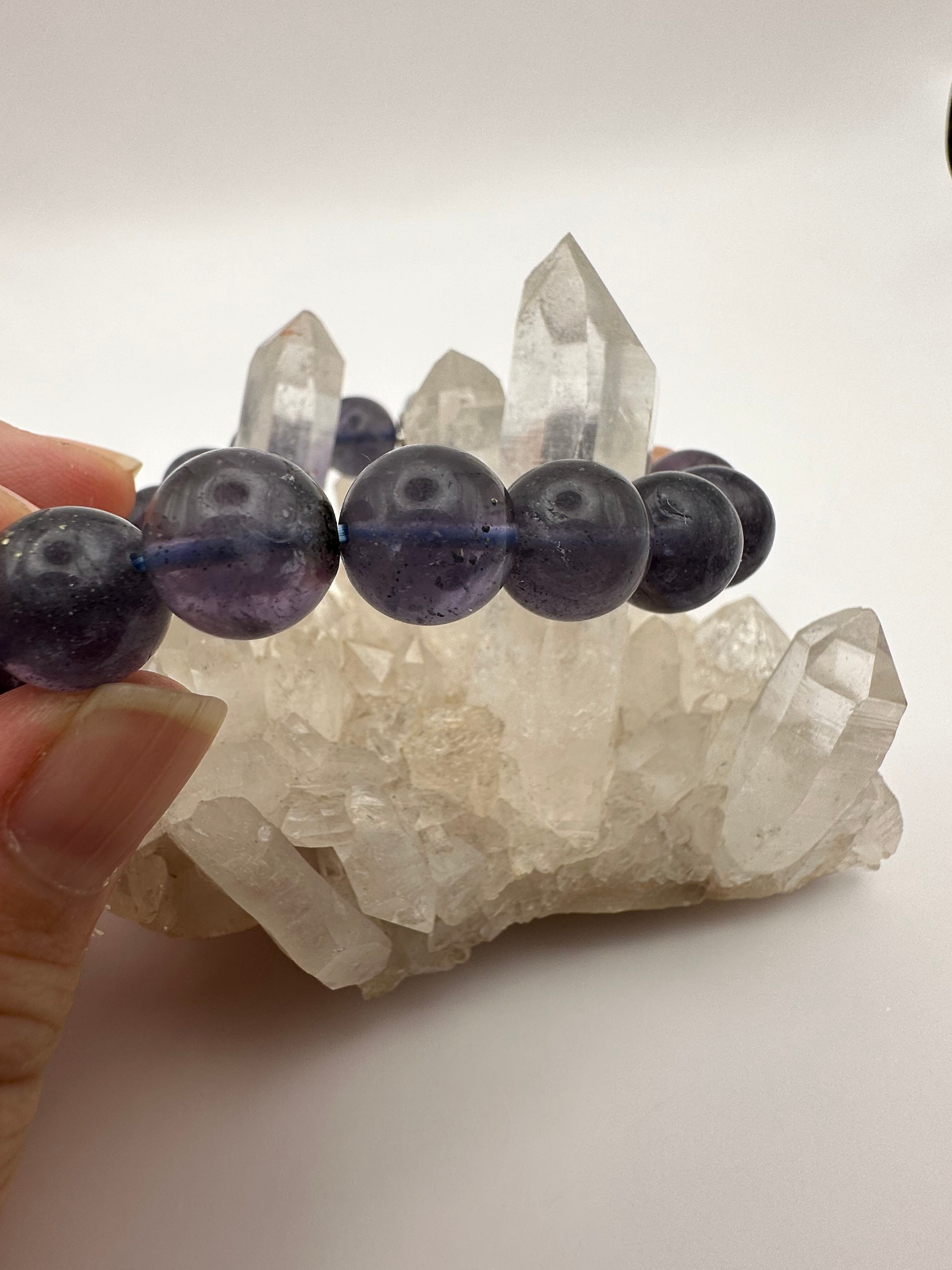 銀河をイメージしたキラキラカットのヘマタイトの細身ブレスを付けました。